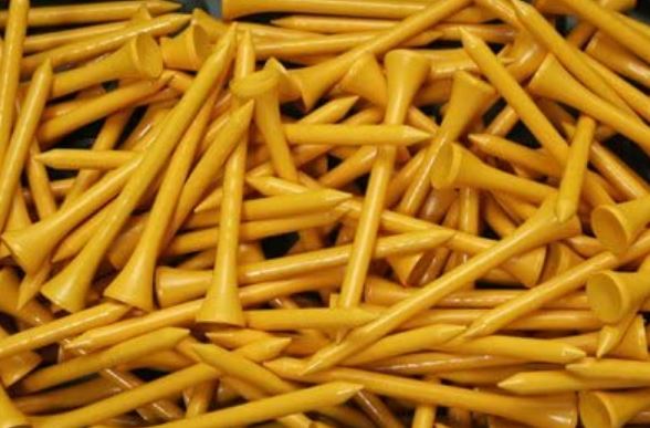 2 3/4 Wood Tees in 100 Packs, with the following colors available; yellow, dark yellow, orange, neon orange, red, neon pink, fuchsia, light pink, light peach, green, neon green, teal, dark green, light blue, neon blue, navy, purple, cranberry, metallic gold, metallic silver and black. Neon and Assorted Color Mixes available as well. All of our tees are durable and reliable.